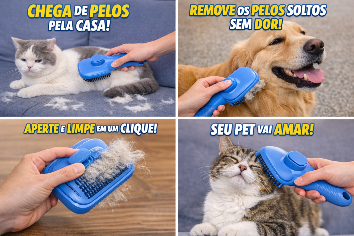Remova os pelos soltos do seu pet de forma rápida, sem dor e sem sujeira.